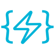 A light blue logo with a thunderbolt in brackets